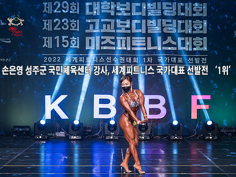 손은영 경북 성주군 국민체육센터 헬스 강사가 지난 7일부터 8일까지 양일간 경남 하동문화예술회관에서 열린 ‘2022년 세계피트니스 선수권대회’ 제1차 국가대표 선발전에서 압도적인 성적으로 1위를 차지했다.