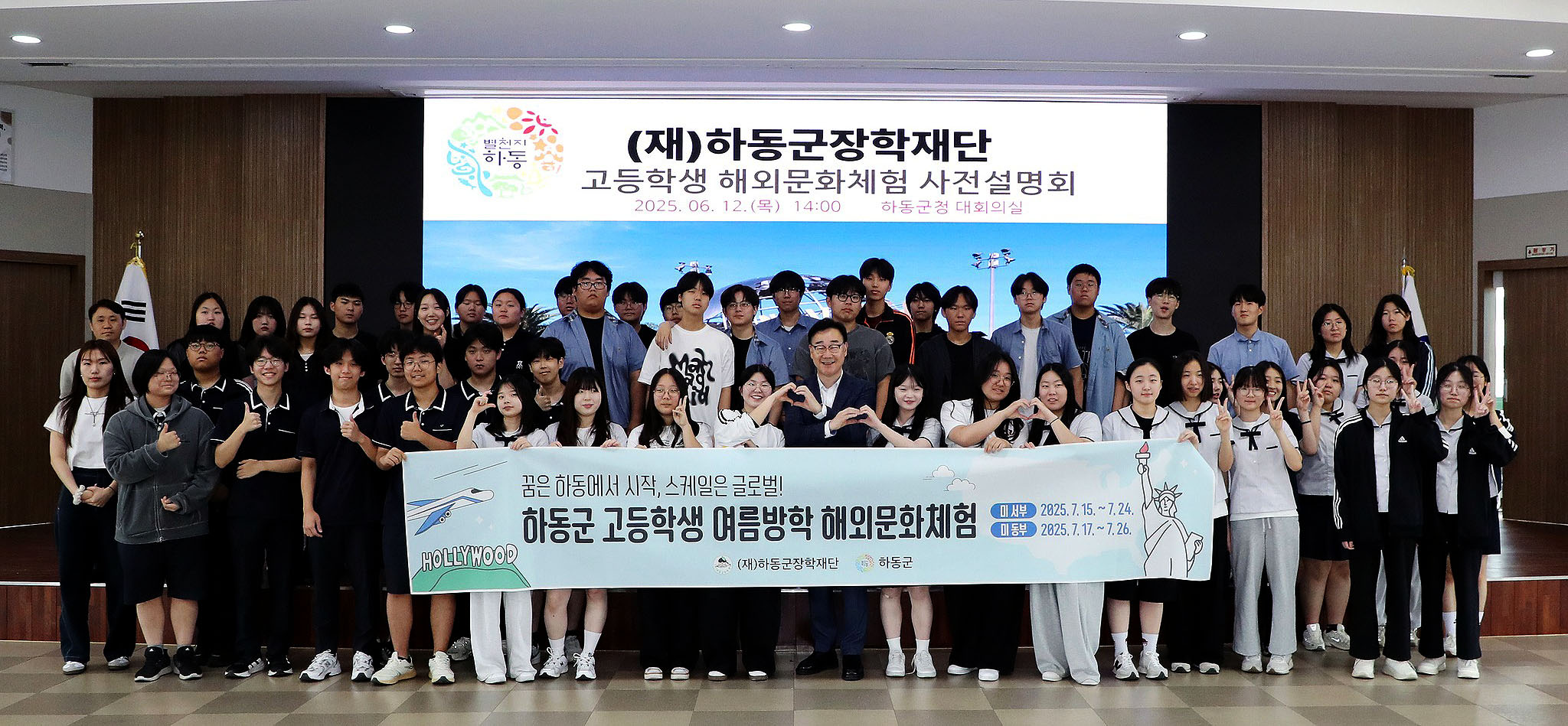 한편, 하동 지역 고등학생과 학부모 등 130여 명은 오는 7월 15일 부터 7박 10일간, 미국 동부와 서부 지역 2개 팀으로 나누어 미국 주요 도시를 방문하며 교육·과학·문화 체험에 나섭니다.