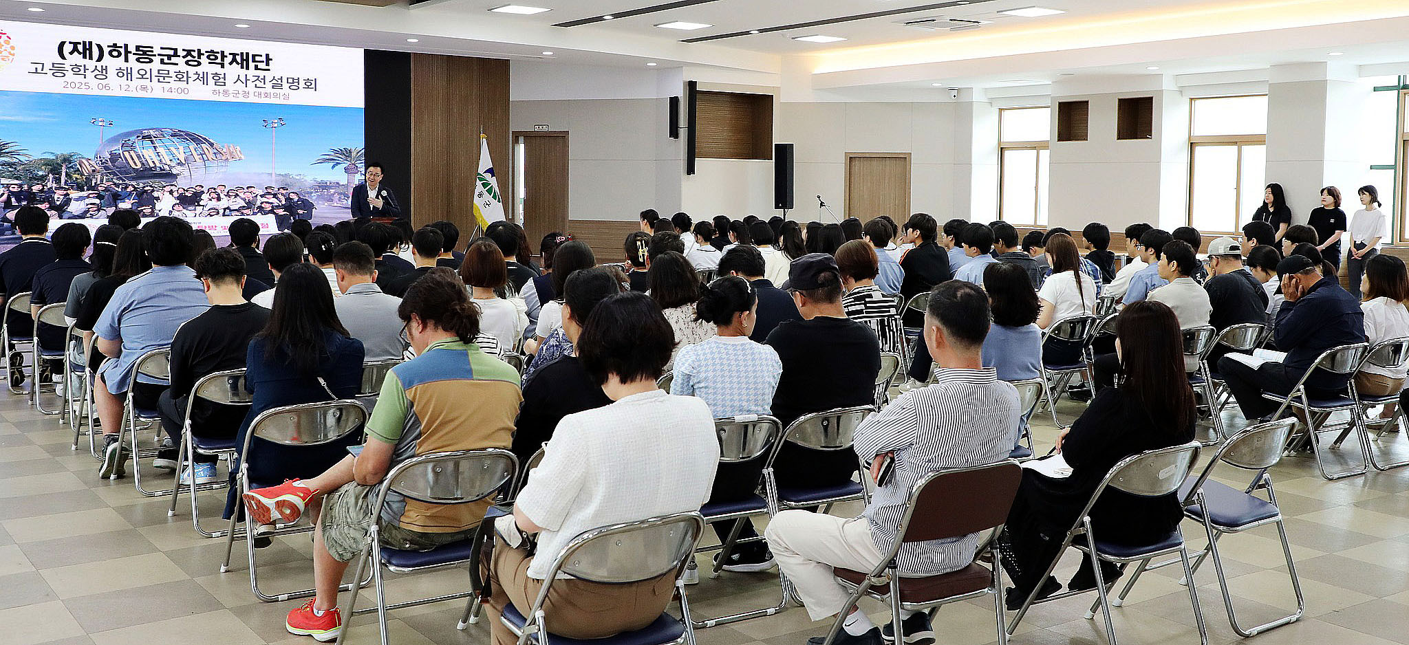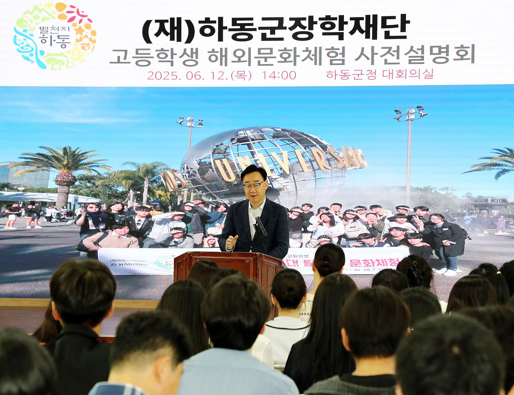 하동군장학재단(이사장 이양호)이 12일 하동군청 대회실에서 하동군 2025 고등학생 여름방학 해외문화체험 사전설명회' 를 열었습니다.