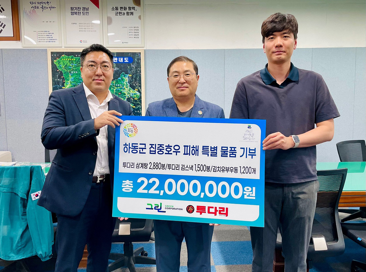 이삼희 하동 부군수는 “올해 초 대형 산불 피해 당시에도 투다리에서 귀한 구호물품을 보내주셨는데, 이번에도 다시 하동을 잊지 않고 따뜻한 나눔을 실천해 주셔서 진심으로 감사드린다”며 깊은 고마움을 전했다.