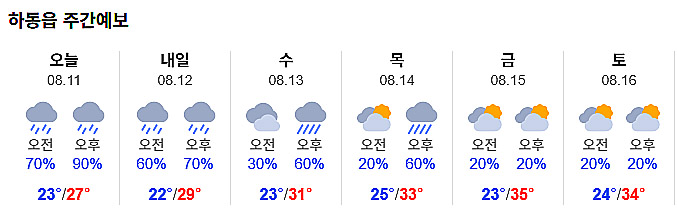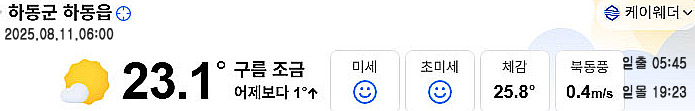| [하동날씨] 하동 종일 비 5∼40mm (2) | 2025.08.12 |