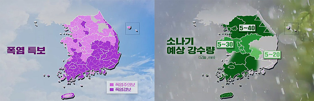 오후까지 전국 대부분 지방에는 소나기 구름이 발달할 수 있겠는데요. 경남 하동지역도 오후에 소나기 소나기 내리는 곳 있겠습니다. 비의 양은 5∼40mm가 예보됐습니다.