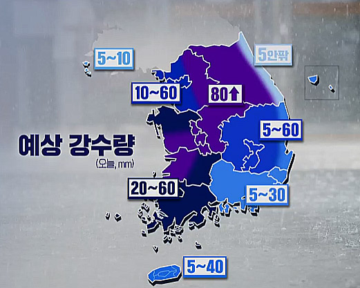 경남 하동지역 예상 강수량은 5∼30mm 입니다. 이번 비는 오늘 오후에 대부분 그치겠습니다.