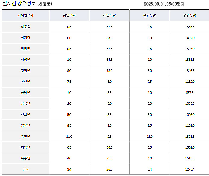어제 하동지역에 내린 비는 36.5mm인데요. 적량면이 65.5mm로 가장 많았고 화개면이 63.5mm, 하동읍과 악양면이 57.5mm의 비가 내렸습니다.