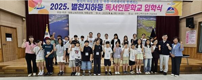 하동교육지원청이 6일 '별천지하동 독서인문학교 입학식'을 열고 본격적인 독서 인문교육에 나섰다. 이번 입학식에는 초·중·고 입학생 66명을 비롯해 하승철 하동군수, 김구연 도의원, 강희순 군의원, 하동문인협회장 등 지역 인사 100여 명이 참석했으며, 고려대 명예교수 강수돌 박사가 인문학 특강을 진행해 학생들에게 사유의 깊이를 더했다.