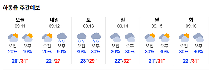| 하동 날씨, 무더위 주춤·선선...내일까지 가을 비 (0) | 2025.09.12 |