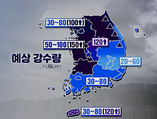 하동 흐리고 한낮 28도...예상 강수량 30에서 80mm