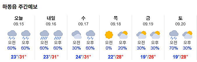 | 주말 하동 날씨,오전 가끔·오후 강한 비…한낮 31도 (0) | 2025.09.13 |