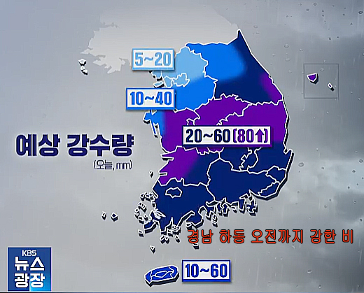 주말 하동 날씨,오전까지 전국 강한 비…최대 60mm