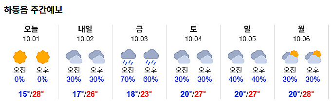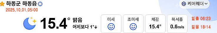 | 하동 날씨,맑고 초가을 날씨...큰 일교차, 낮 최고 28도 (0) | 2025.10.02 |