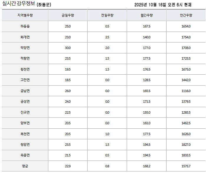 | 하동 날씨, 종일 비...예상 강수량 10∼60mm (0) | 2025.10.14 |