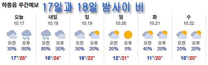 하지만 하동장날인 오늘(17일)은 오전엔 맑다가 오후부터 점차 구름 많아지면서 흐린하늘보이는데요. 밤부터는 또다시 가을비가 내리겠습니다.