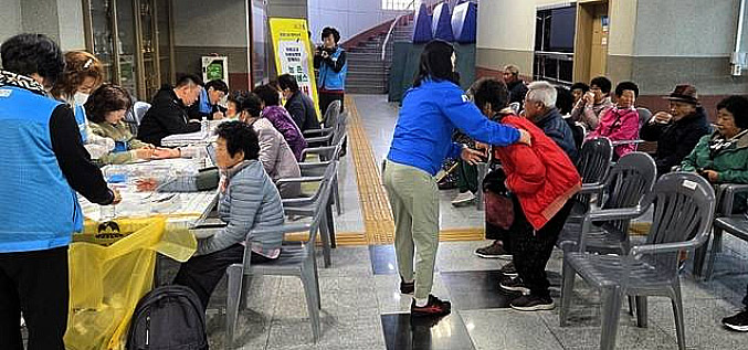 하동군 주민들이 건강 진료를 받고 있습니다.