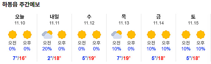 | 하동 날씨,'절기 입동' 낮 기온 22도 온화...큰 일교차 (1) | 2025.11.07 |