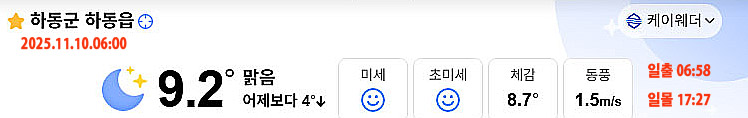 | 수능일 하동 날씨, 다행히 큰 추위는 없어…큰 일교차 주의 (0) | 2025.11.13 |