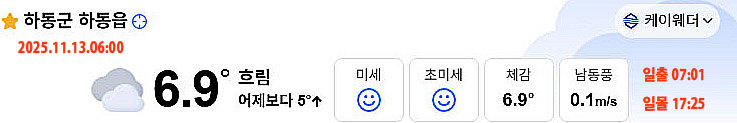 | 하동 대체로 맑은 날씨…낮 최고기온 16도 (0) | 2025.11.10 |