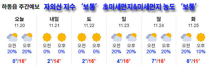 | 하동 날씨, 21일 맑고 건조..한낮 15도 (0) | 2025.11.21 |