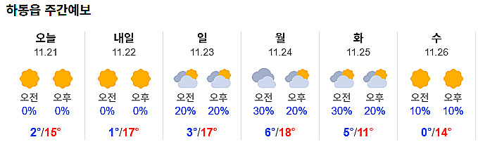 | 하동 날씨, 20일 아침 영하권 추위...한낮 추위 누그러져 (0) | 2025.11.20 |