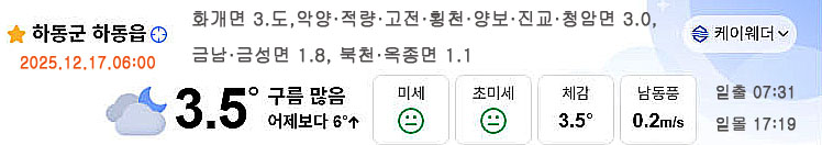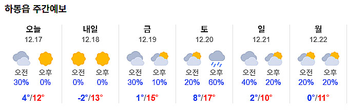 | 하동 날씨,출근길 영하권 추워…낮부터 기온 올라 (1) | 2025.12.15 |