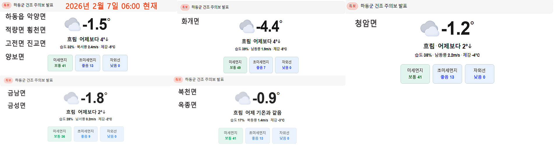 지역의 대기는 여전히 건조합니다. 하동지역에도 건조주의보가 발효 중입니다.