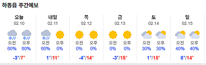 | <하동 주말 날씨>구름많지만 맑은 하늘...낮 최고 기온 3도 (0) | 2026.02.07 |