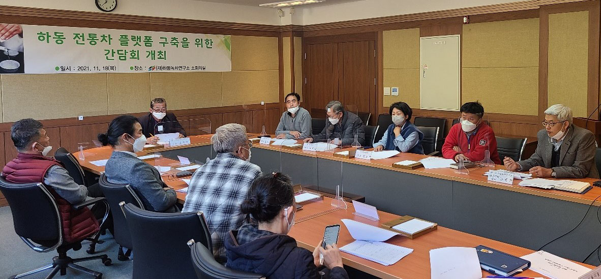 하동녹차연구소(소장 오흥석)는 지난주 녹차연구소 회의실에서 관내 9개 제다업체 대표를 초청해 하동 전통차 제다 플랫폼 구축을 위한 교육 및 간담회를 가졌다고 23일 밝혔다.