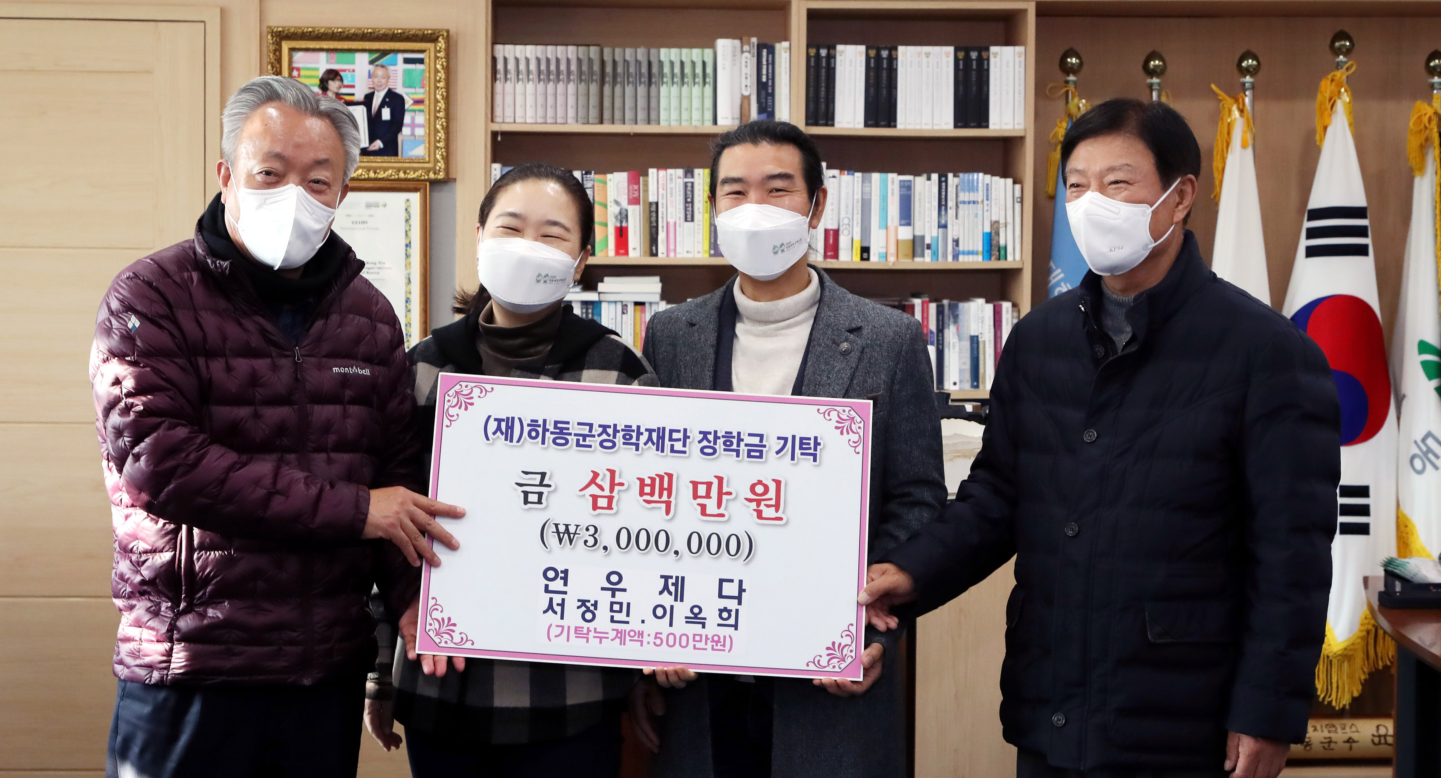 (재)하동군장학재단(이사장 이양호)은 하동읍 소재 연우제다 서정민 대표가 최근 군수 집무실을 찾아 장학기금으로 300만원을 기탁했다고 3일 밝혔다.