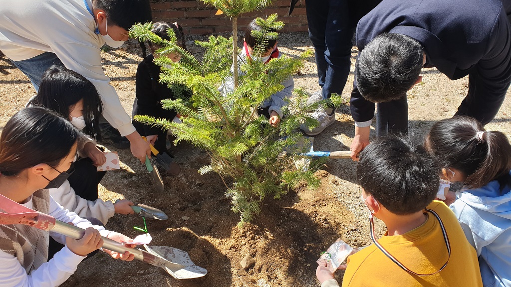 축하 케이크 컷팅을 마치고 운동장으로 나간 전교생은 학교 교목인 전나무를 함께 심고 자신의 바람과 꿈을 담은 소망쪽지를 매달며 소망나무의 자람과 함께 자신의 꿈을 키워 나갈 것을 다짐했다.