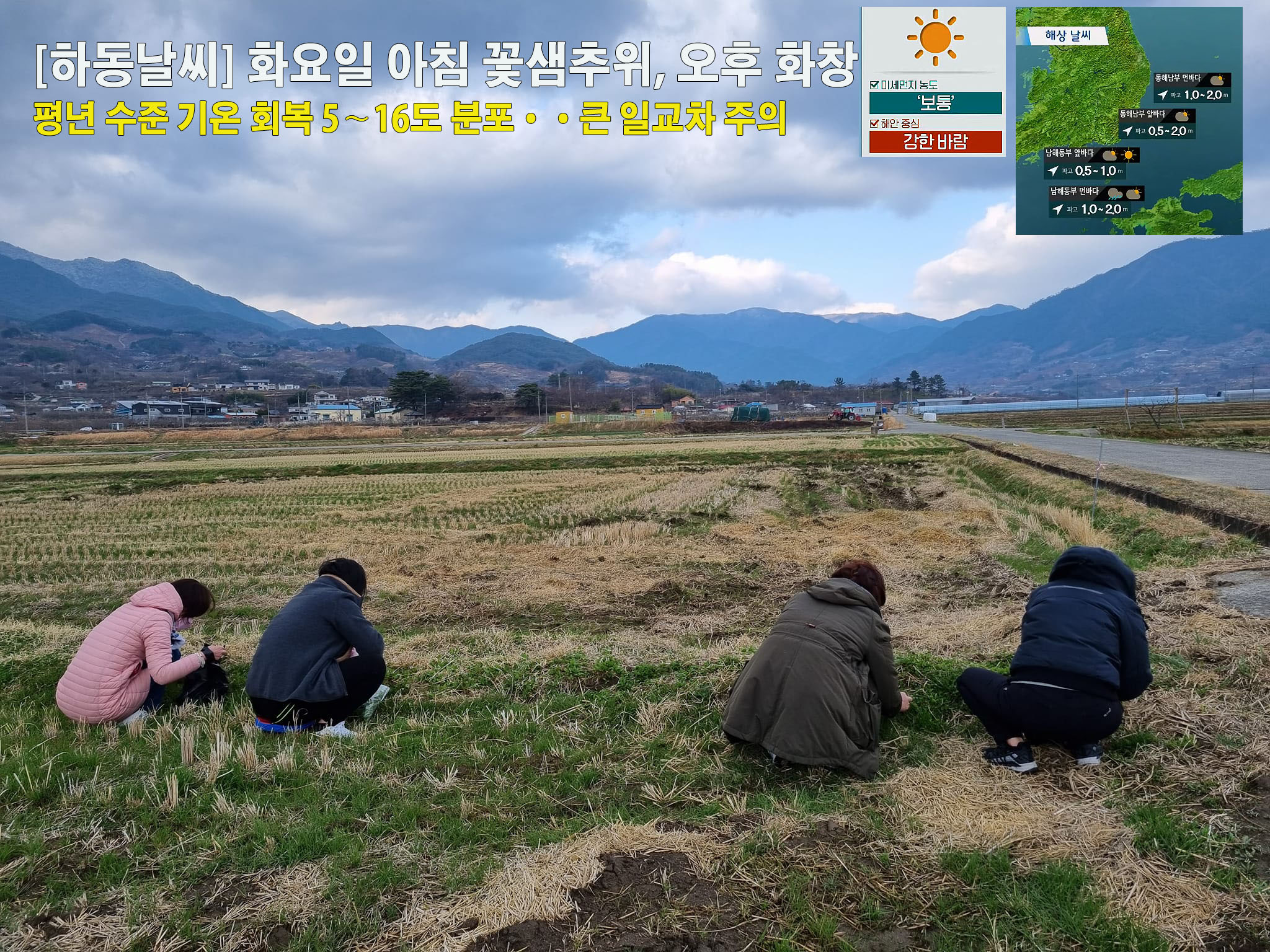 하동날씨, 화요일 아침 꽃샘추위 오후 화창