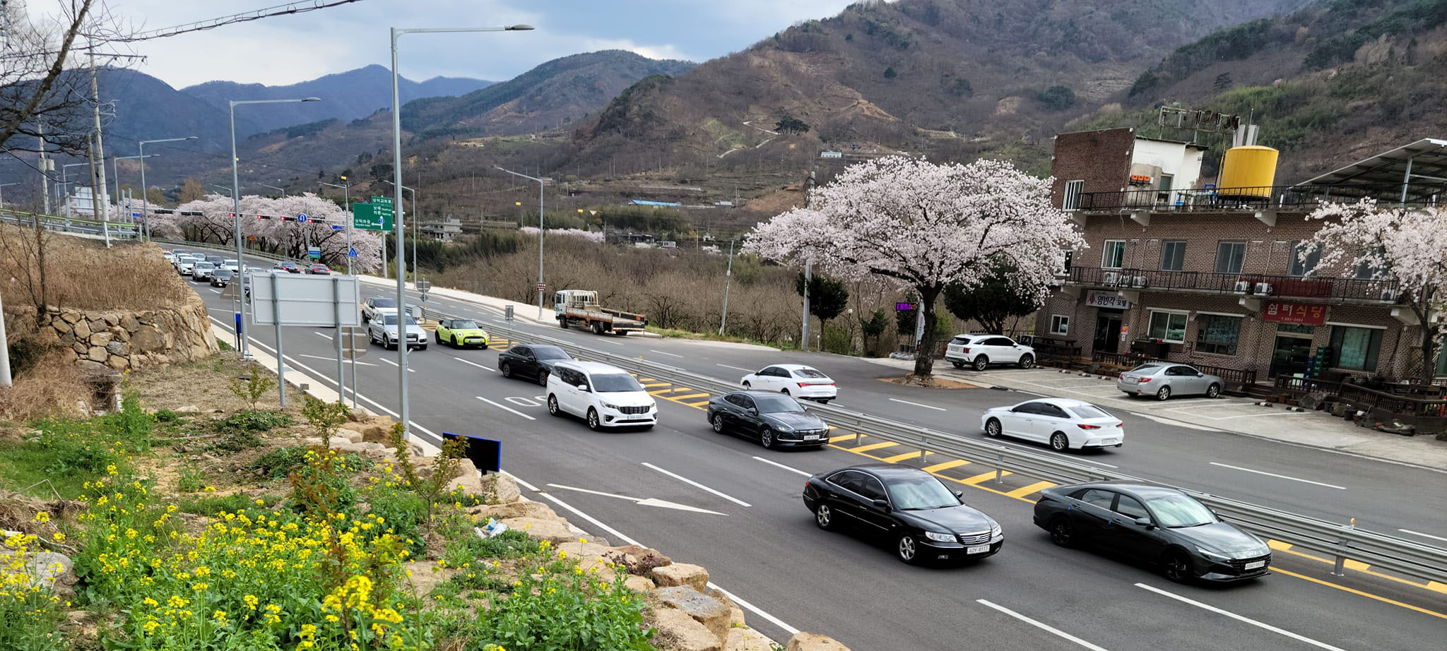 1일 오후 전국의 대표적인 벚꽃 명소인 화개 십리벚꽃길을 향해 섬진강변 국도19도로에 꽃구경에 나선 상춘객 차량 행렬이 이어지고 있습니다.
