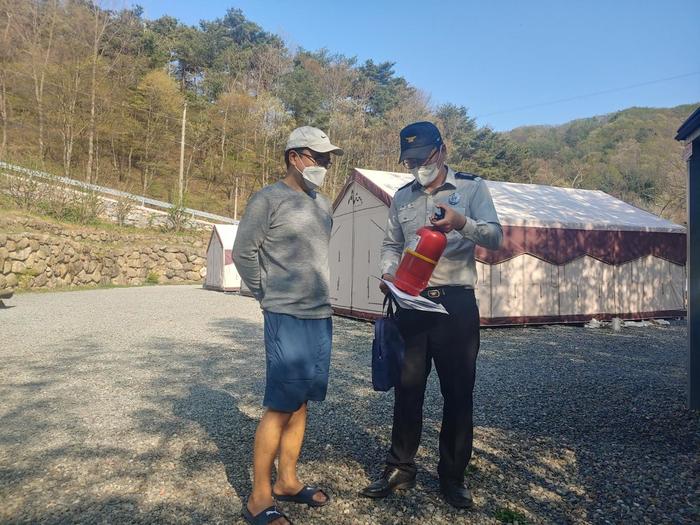 주요 점검 내용은 ▶숯불·전기 및 가스용품 안전 사용 당부 ▶야영장 내 소화기 비치 여부 ▶화기취급시설과 텐트와의 안전거리 확보 여부▶ 화재 예방 및 초기 대응 요령 교육 등이다.