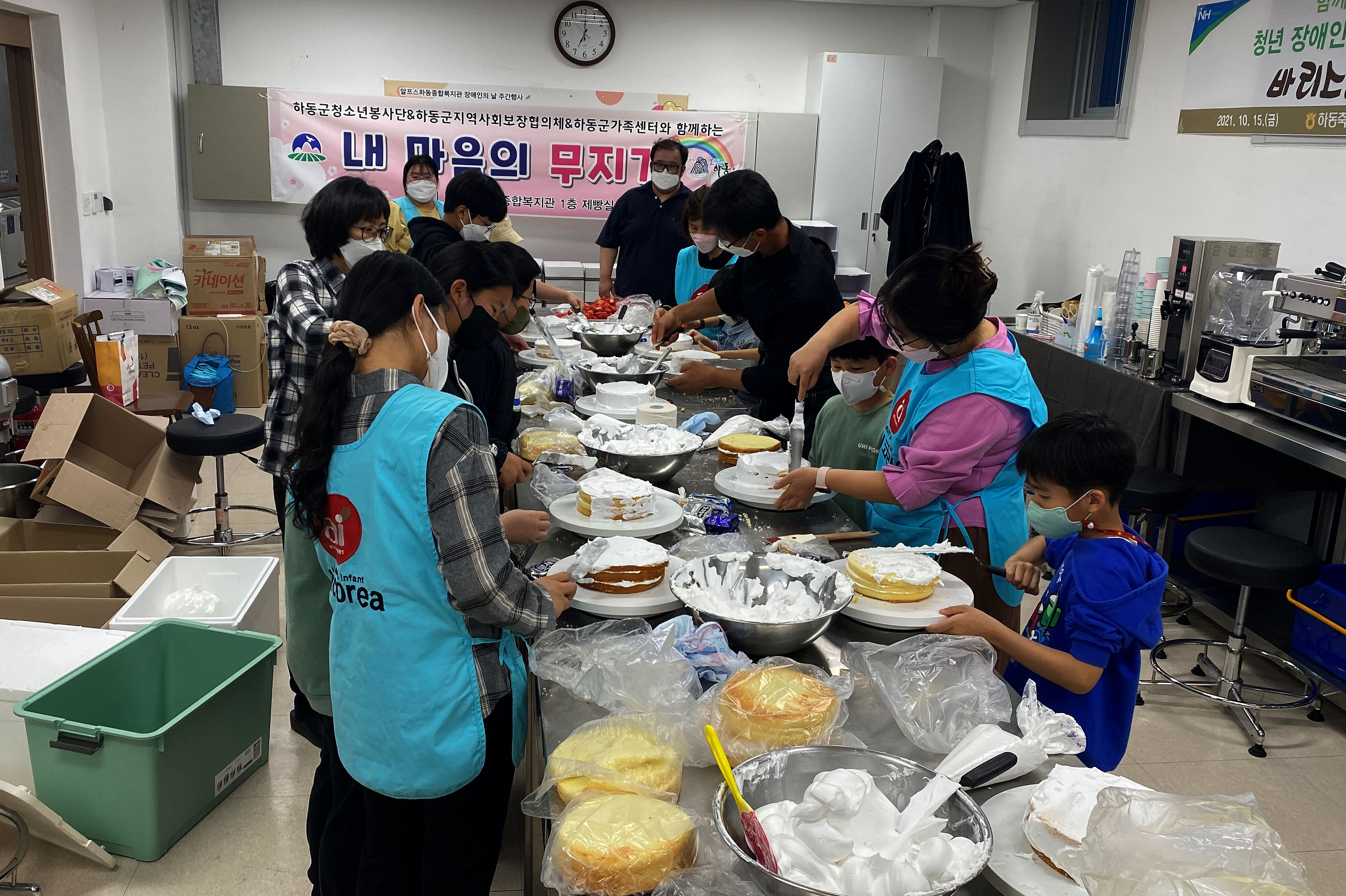 케이크 만들기에는 군협의체 위원 및 하동군가족센터 가족역량강화지원사업 청소년 자조모임의 청소년 봉사자 20여명이 참여했으며, 다소 엉성하지만 정성을 담은 케이크를 전해 큰 호응을 얻었다.